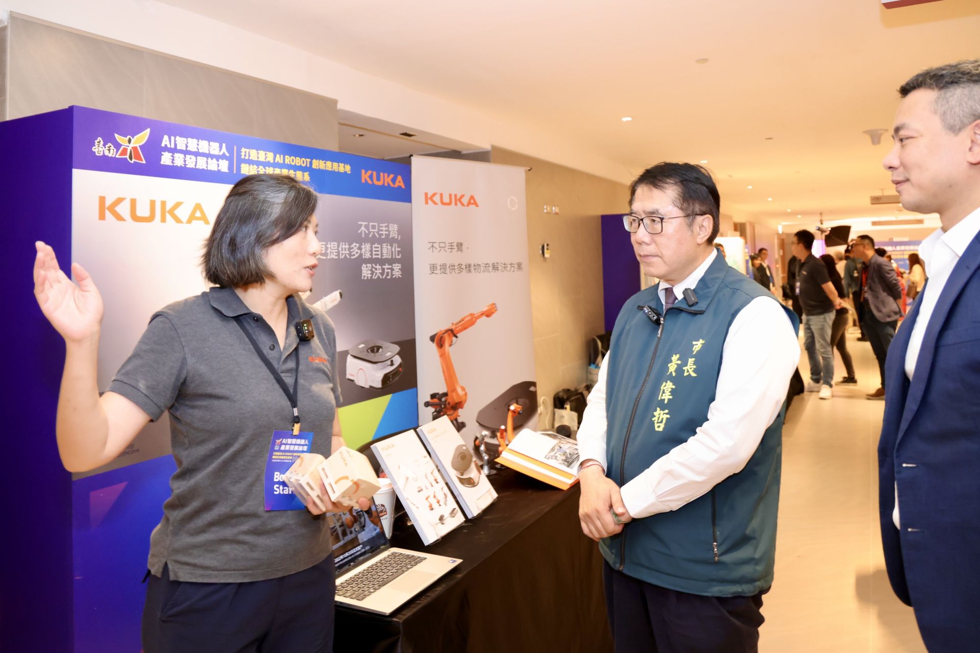 今日現場還有企業展示智慧機器人應用成果,黃偉哲特別至機器人展示區參觀,並與業者進行互動交流,除肯定企業的創新實力與投入,也表示台南將持續以開放的態度,打造AI與智慧製造產業共創共榮的發展環境。
